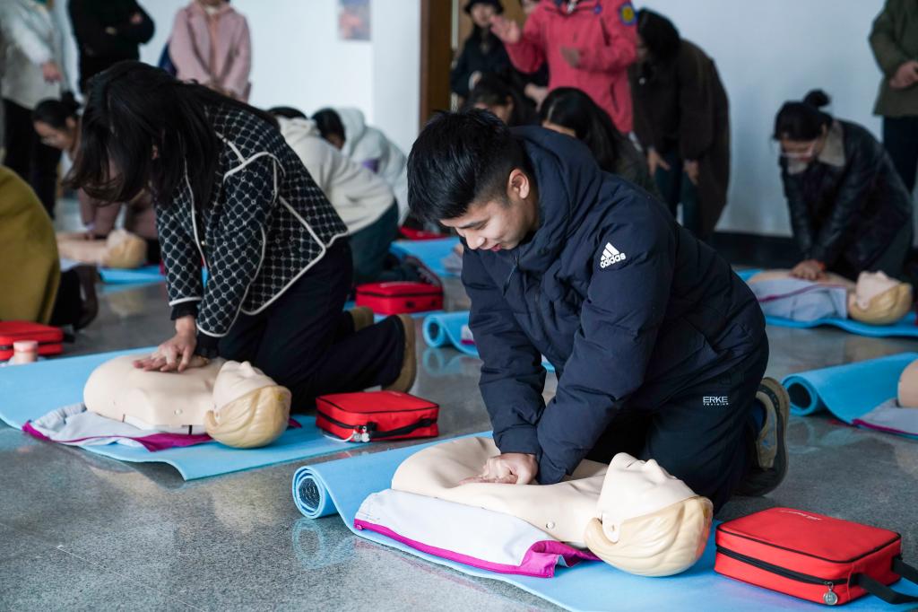 培训过程中,教职工们认真学习心肺复苏知识,依次开展模拟抢救,积极投入实操训练,现场学习氛围浓厚。在专业老师的悉心指导下,大家逐步掌握了胸外按压、人工呼吸等核心急救技能,并顺利通过了现场技能考核。
