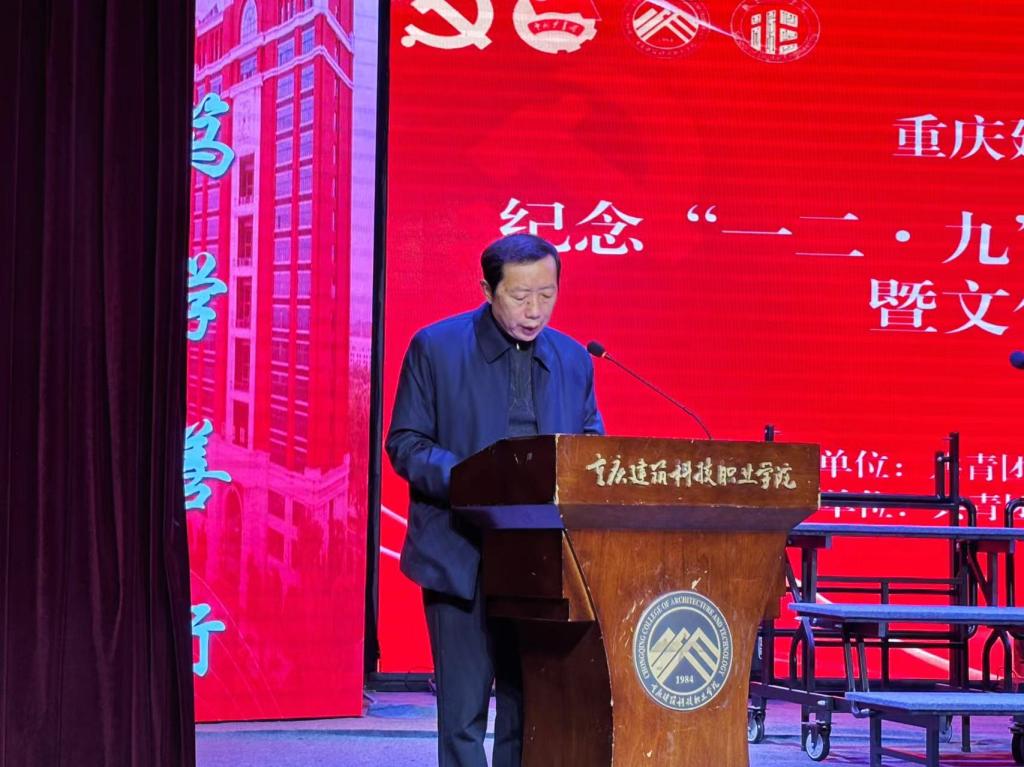 政府督导专员、校党委书记何光明亲临现场并致辞,与400余名师生共同见证这一庄严而热烈的时刻。何光明书记在致辞中深情回顾了“一二・九”运动的历史意义,他指出,这场运动是青年爱国主义精神的生动写照,是一代代青年勇担民族大义的精神丰碑。他寄语全体师生,要以歌声为媒铭记历史,以奋斗为笔书写未来,将爱国情怀转化为笃行实干的动力,在新时代征程中勇担使命、建功立业。随着何书记宣布本届文化活动月正式开幕,全场掌声雷动,为活动奠定了昂扬奋进的基调。