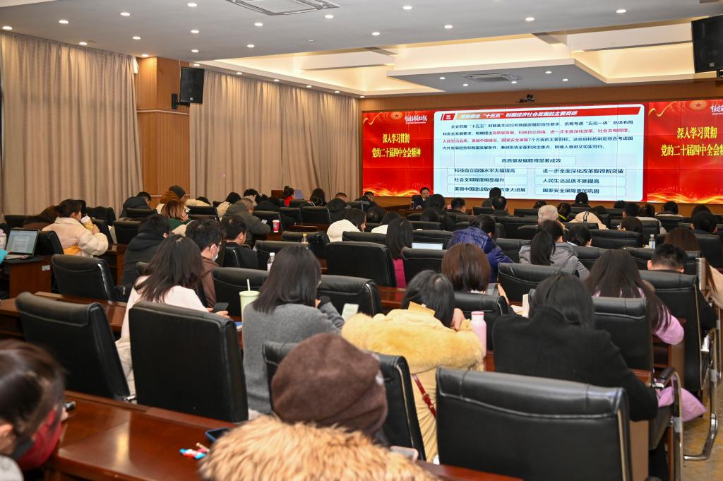12月24日下午,学校副校长周俊华在大数据中心为数字艺术学院和通识教育学院全体教师作党的二十届四中全会精神专题宣讲。
