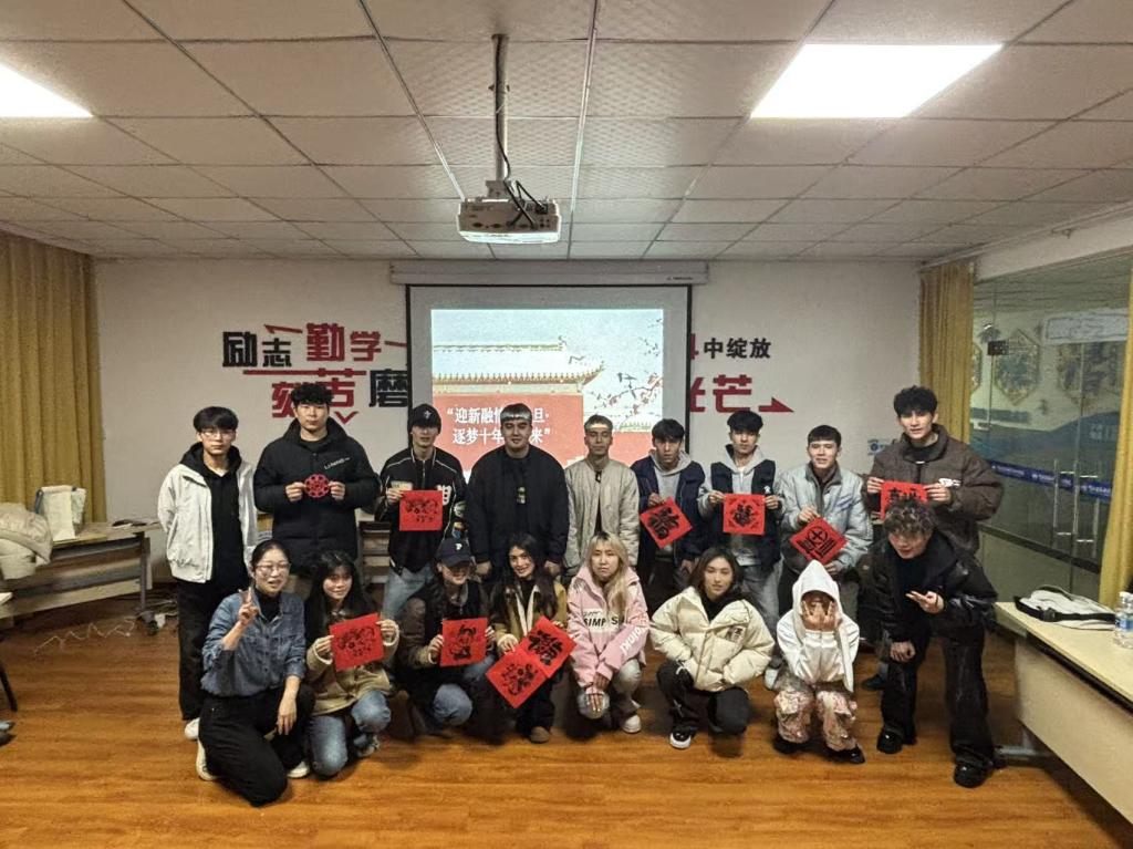 同学们在志愿者引导下实现“新老生+不同民族”混搭入座,为跨民族交流奠定基础。暖场破冰环节,“多维自我介绍”接龙让现场迅速升温,同学们依次分享姓名、民族、家乡习俗与十年职业愿景,活动拉开序幕。维吾尔族同学细数家乡的葡萄沟风光、烤包子的香气,描绘着家乡热闹景象;土家族同学分享吊脚楼里的生活日常和“赶年”的独特习俗;苗族同学则介绍起苗寨的秀丽山水、精美苗绣的制作巧思,以及苗家儿女的淳朴热情等。同学们用质朴的语言分享家乡故事,在交流中增进了解,拉近距离。随后,老生代表顺势分享在校学习、实习就业和未来规划等,为新生职业启蒙答疑解惑。核心讨论环节“十年后的我们”成为活动亮点。4名新生代表结合自身专业与自身优势,分享了立足本专业将要热情投身于家乡建设中。分享环节结束后,现场氛围愈发轻松热烈,同学们自发唱起耳熟能详的歌曲,熟悉的旋律回荡在室内,歌声里满是青春的朝气与对新年的期许。随后的印春联、赏剪纸环节将节日氛围拉满,在墨香与剪纸的巧思中,传递着对新年的美好期盼。活动尾声,同学们在“时间胶囊”卡片上写下职业目标、成长期待与民族团结祝福,辅导员将卡片统一保管,约定毕业后相聚开启。全员手持新年祝福合影留念,定格温暖瞬间。