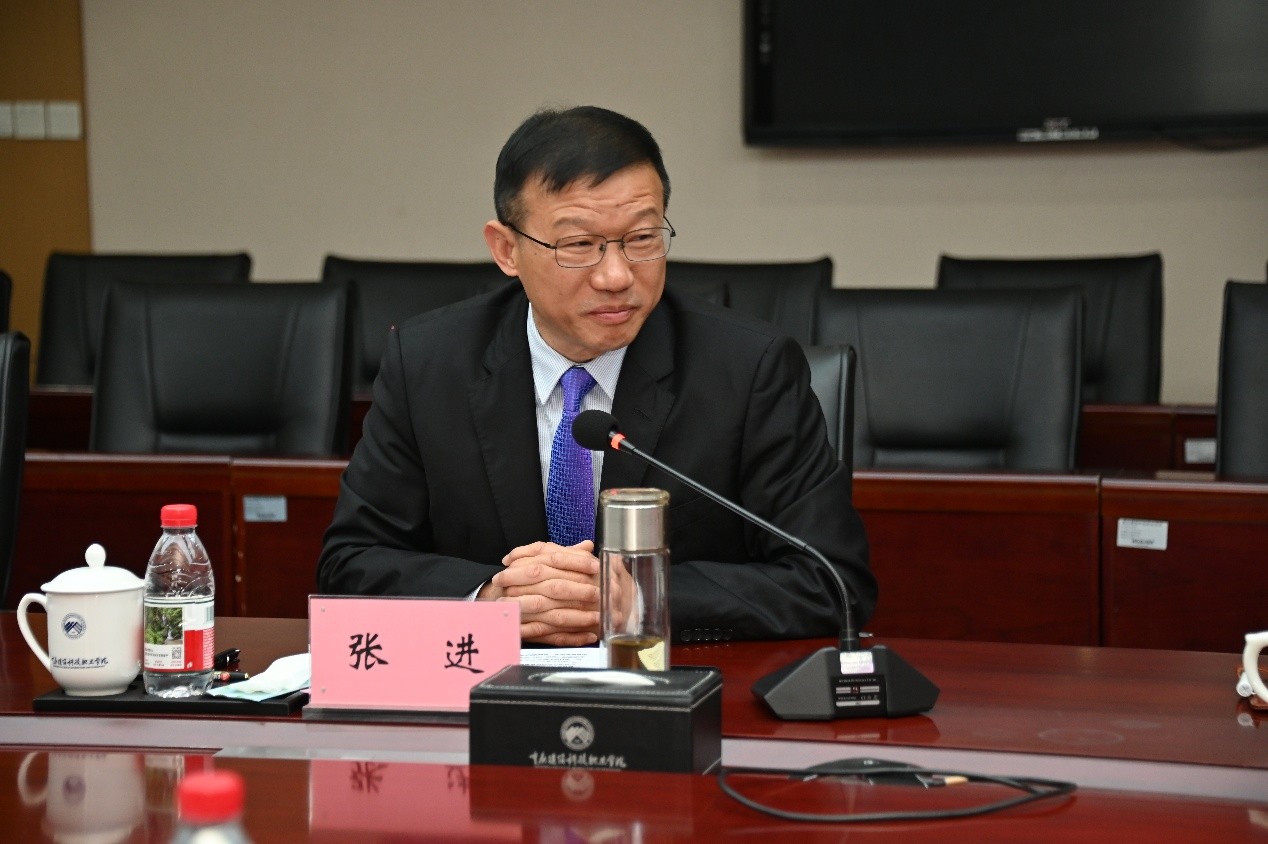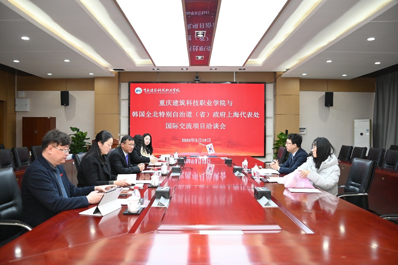 张进校长对宋晟勋首席代表一行的到访表示热烈欢迎和诚挚问候。他指出,重庆与韩国全北特别自治道地缘相近、人文相亲,长期以来在各领域的交流合作成果丰硕,为校地携手搭建了良好桥梁。同时介绍了学校的办学历史、办学规模、专业布局及国际交流合作成果,强调学校始终以开放姿态推进国际化办学,已与全北地区的全州大学、圆光大学建立了深厚的合作友谊。张进校长表示,全北特别自治道作为韩国文化与教育重镇,在职业教育、科技发展等领域的先进经验值得学校学习借鉴,此次与全北特别自治道政府上海代表处的合作签约,将为学校深化与全北地区的交流合作搭建更高平台,期待双方以此次签约为契机,在职业教育、人才培养、科研合作等领域拓展交流深度与广度,助力中韩教育合作迈上新台阶。