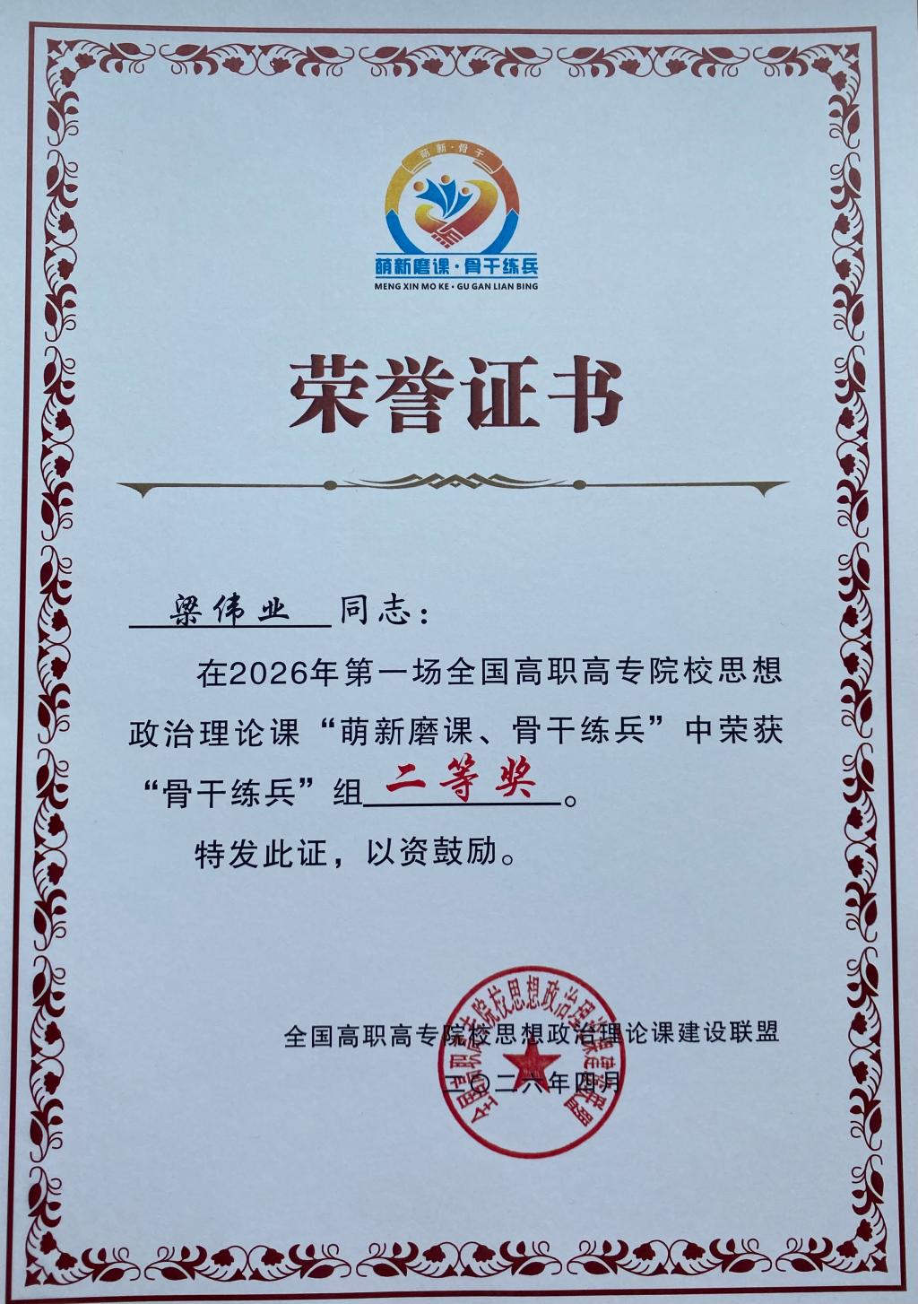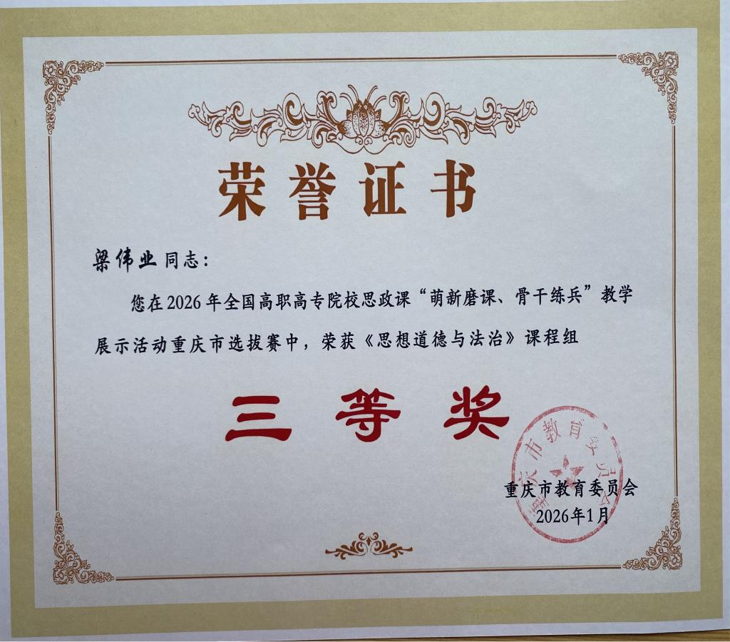 全国高职高专院校思政课建设联盟是在教育部社科司指导下成立的思政课教学协同建设和创新组织。高职高专院校思政课“萌新磨课·骨干练兵”教学展示活动是联盟的品牌活动。Kaiyun官方网站登录入口教师梁伟业在此次活动中表现突出,荣获“骨干练兵”组全国二等奖。
