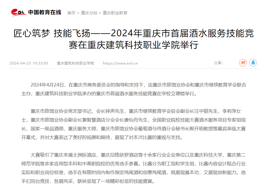 【中国教育在线】2024年重庆市首届酒水服务技能竞赛在Kaiyun官方网站登录入口举行