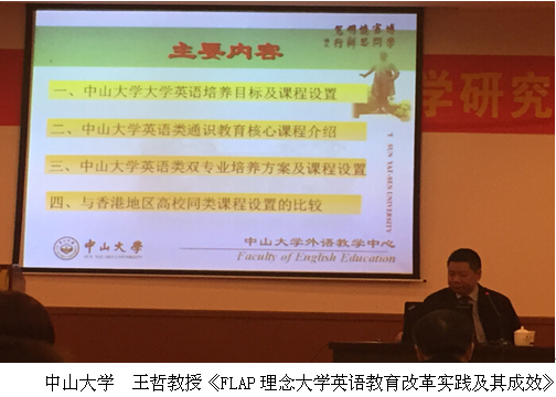 此外,王哲教授介绍了《FLAP理念大学英语教育改革实践及其成效》的经验。在报告中,王教授重点介绍了大学英语通识类课程的改革及成效,以及英语双专业的改革及成效,为大学英语的改革做了很好的经验交流和示范作用。