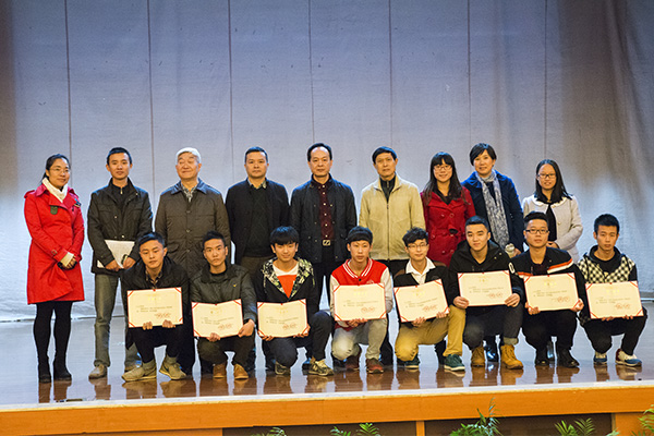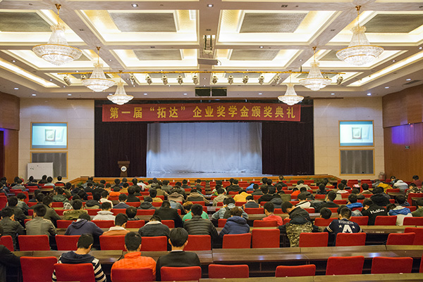 重庆拓达集团有限公司总工程师尹飞云宣读了获奖决定,石泽高、全平2位同学获一等奖学金,喻立、杨锐涵、谭军、张崇浩4位同学获二等奖学金,罗金伟、张启东、苟磊、蔡天5位同学获三等奖学金。