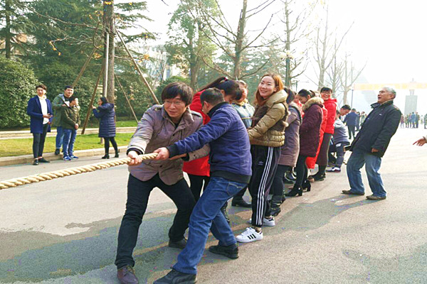 2017年12月20日,我系全体教职工在恩来广场参加学校组织的首届趣味体育文化艺术节中的拔河比赛。本次比赛以促进全体教职工更进一步地了解校园体育文化为宗旨,丰富教职工生活为目的,以比赛的形式为教职工提供展现集体风采的舞台,通过拔河比赛发扬团队精神,增强凝聚力。全体教职工以极大的热情参与到此次活动中。