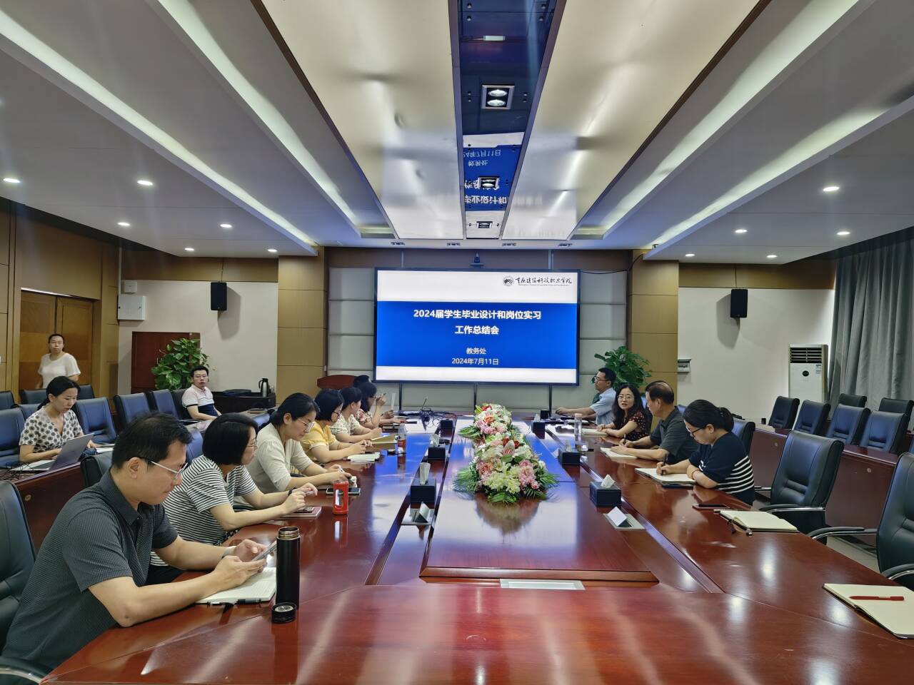 会上,首先各二级学院结合2024届学生毕业设计和岗位实习工作开展情况,从组织管理、过程性指导、工作成效、存在问题及解决办法等方面进行了全面总结。