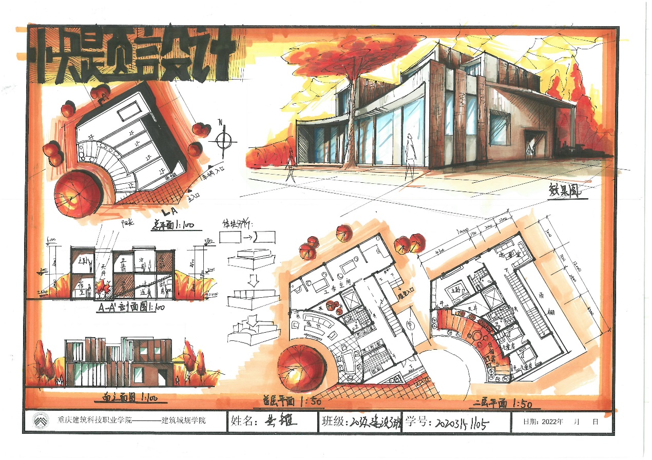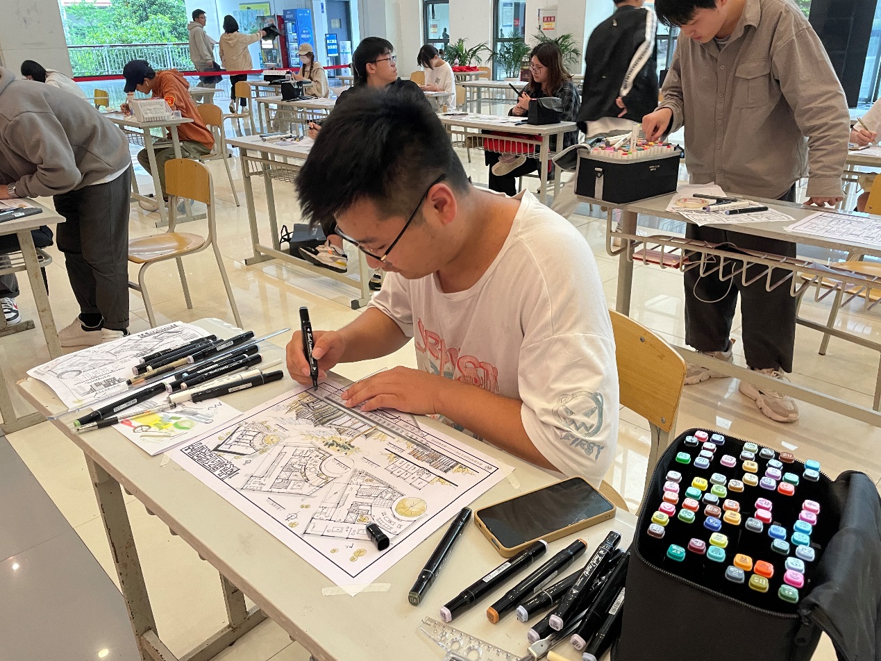 此次比赛共近100名同学参加了长达3小时的竞赛。经过紧张、热烈又激烈的竞赛过程,同学们呈现出了画面饱满、线条精准、色彩斑斓的作品,富有设计感与创新思想,体现了的当代建筑专业职业教育的工匠精神,展现了当代高职学生的激情与梦想和坚持不懈的品格!