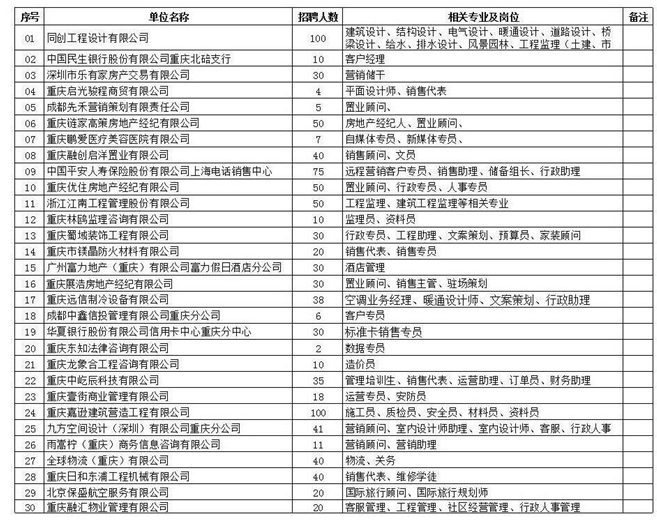 附件:重庆房地产职业学院2019届毕业生第二场双选会用人单位表