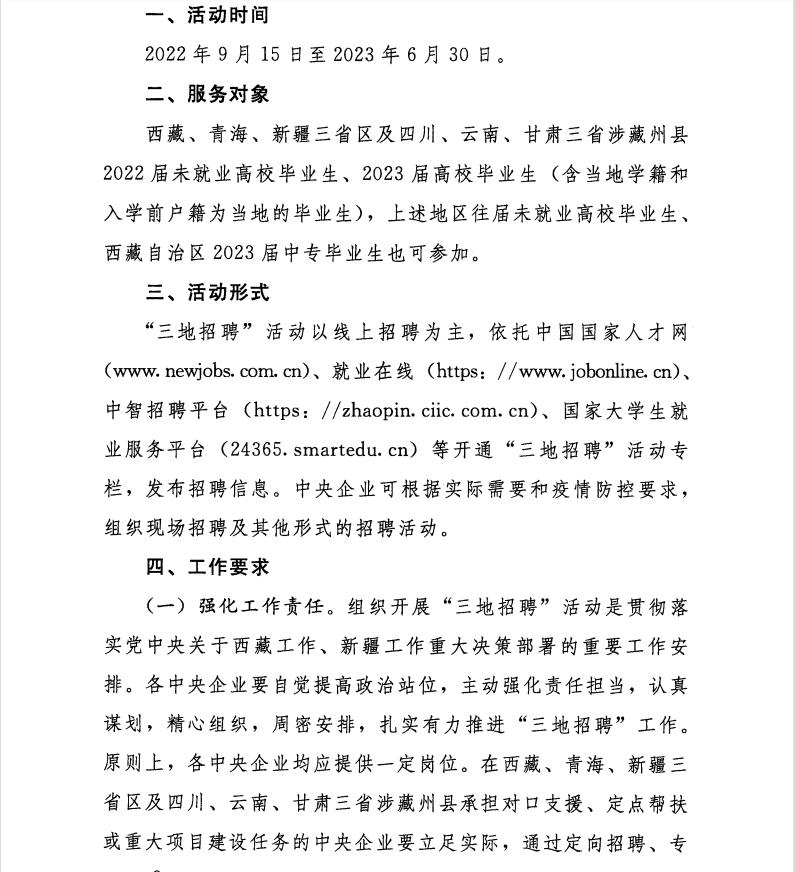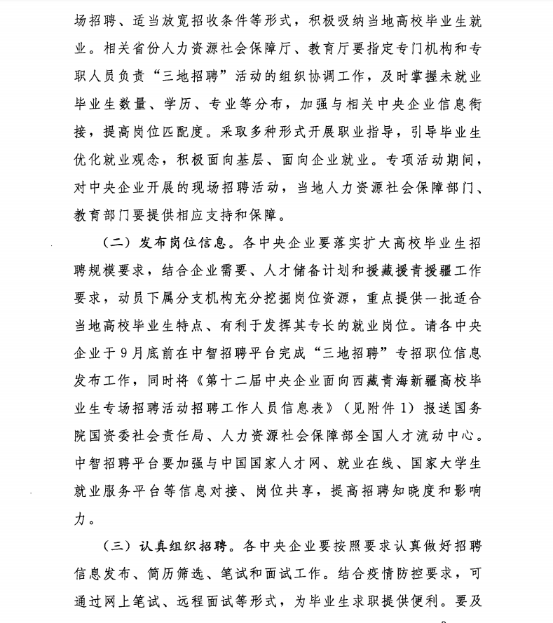 关于开展第十二届中央企业面向西藏青海新疆高校毕业生专场招聘活动的通知