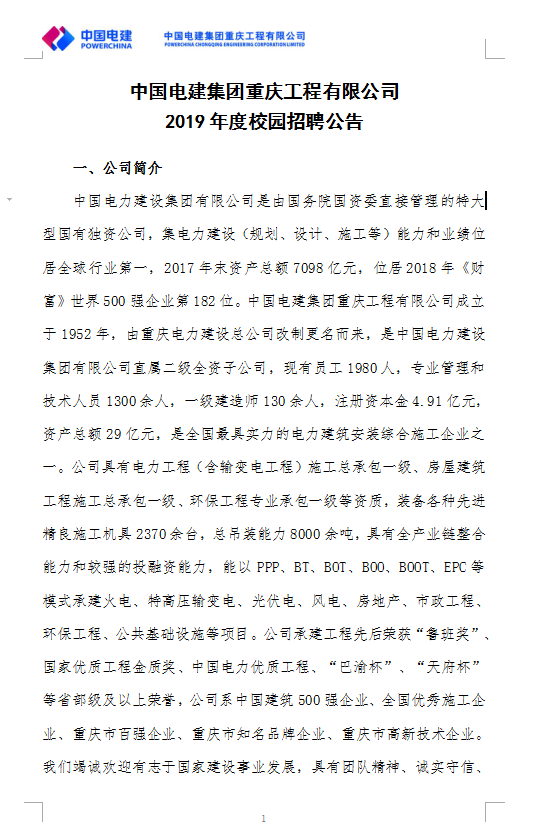 中国电建集团重庆工程有限公司