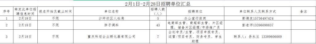2月1日-2月28日招聘单位汇总