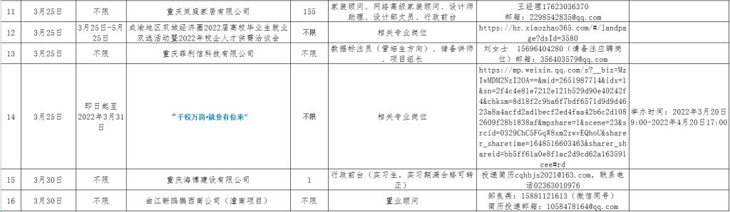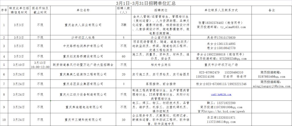 3月1日-3月31日招聘单位汇总