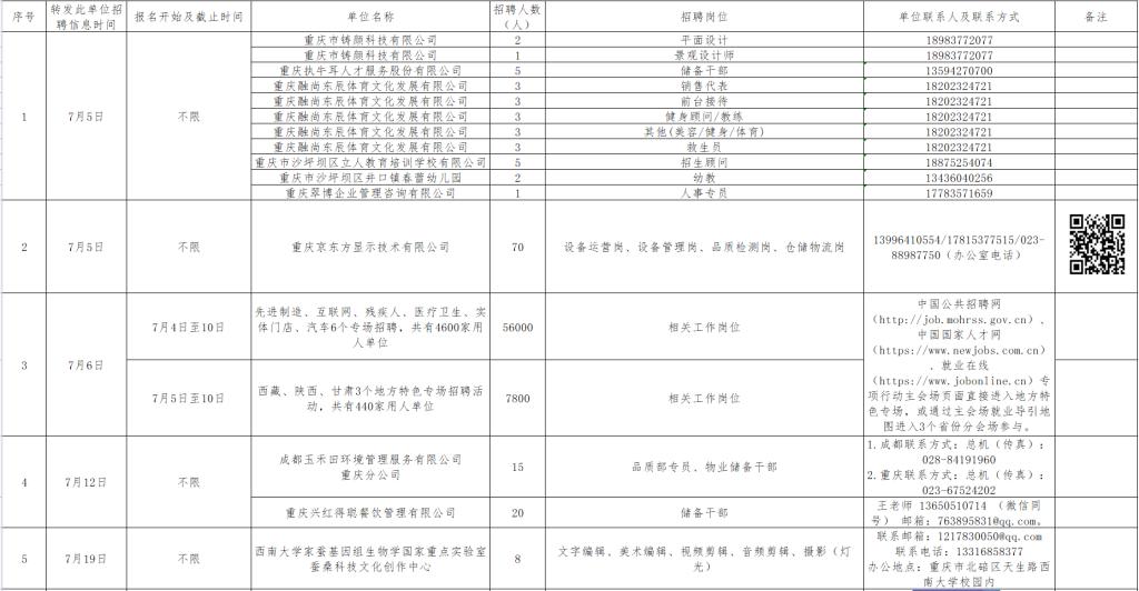 7月1日-7月31日招聘单位汇总