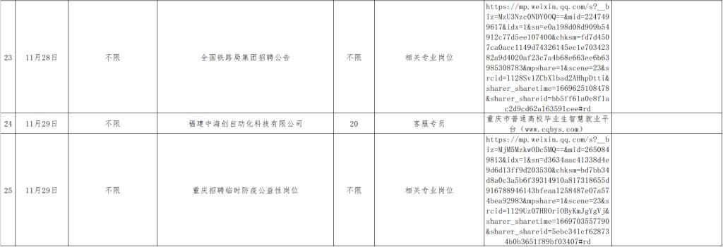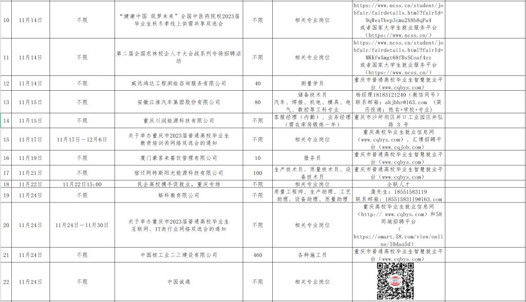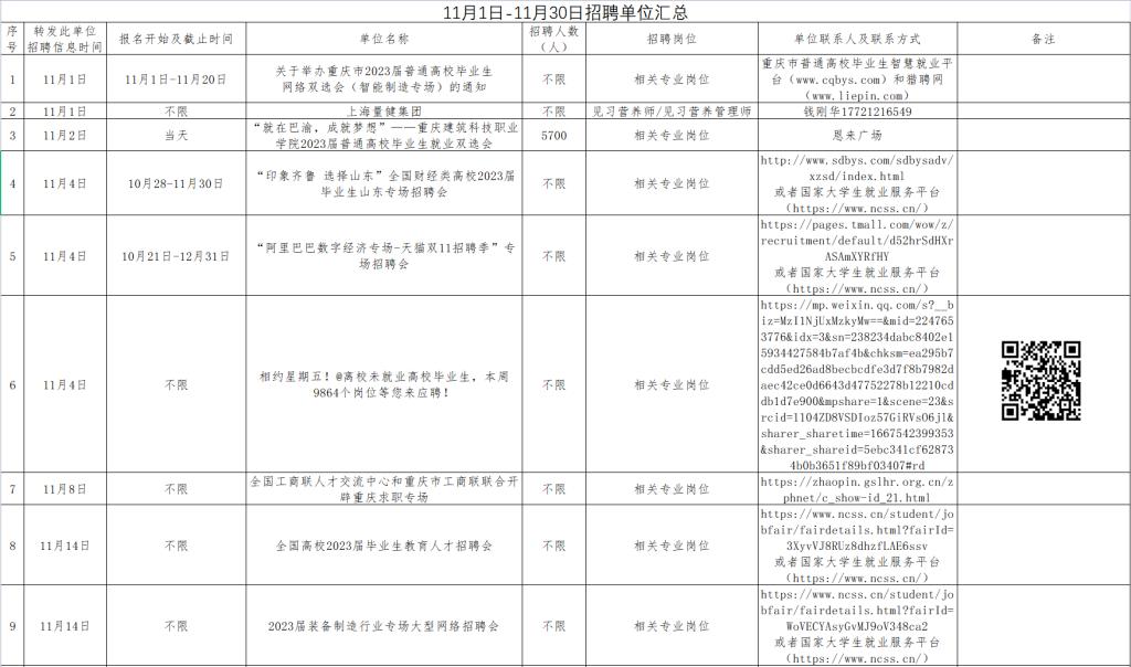 11月1日-11月30日招聘单位汇总