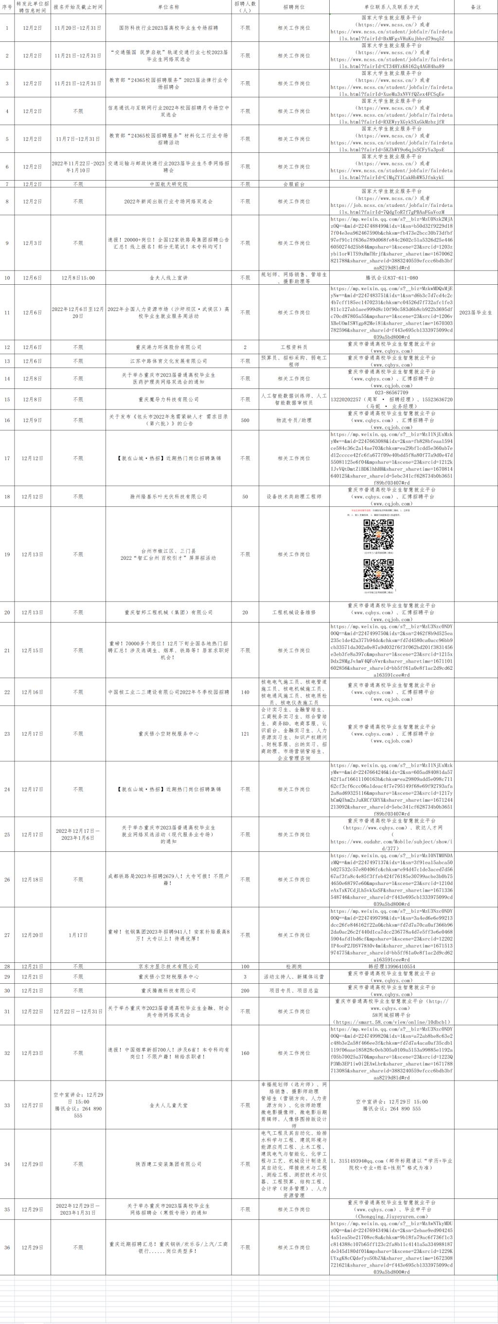 12月1日-12月31日招聘单位汇总