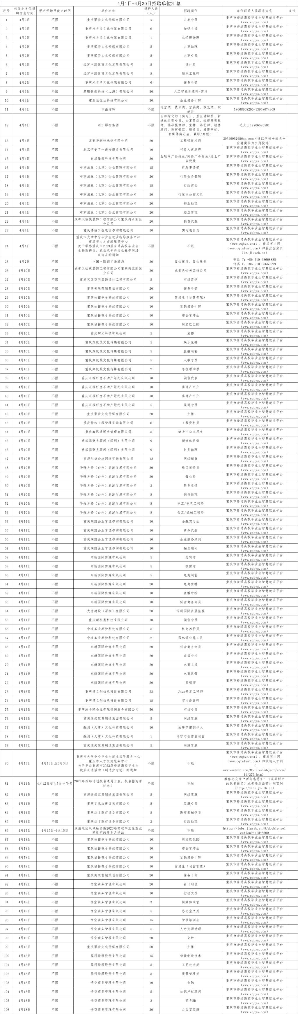 4月1日-4月30日招聘单位汇总