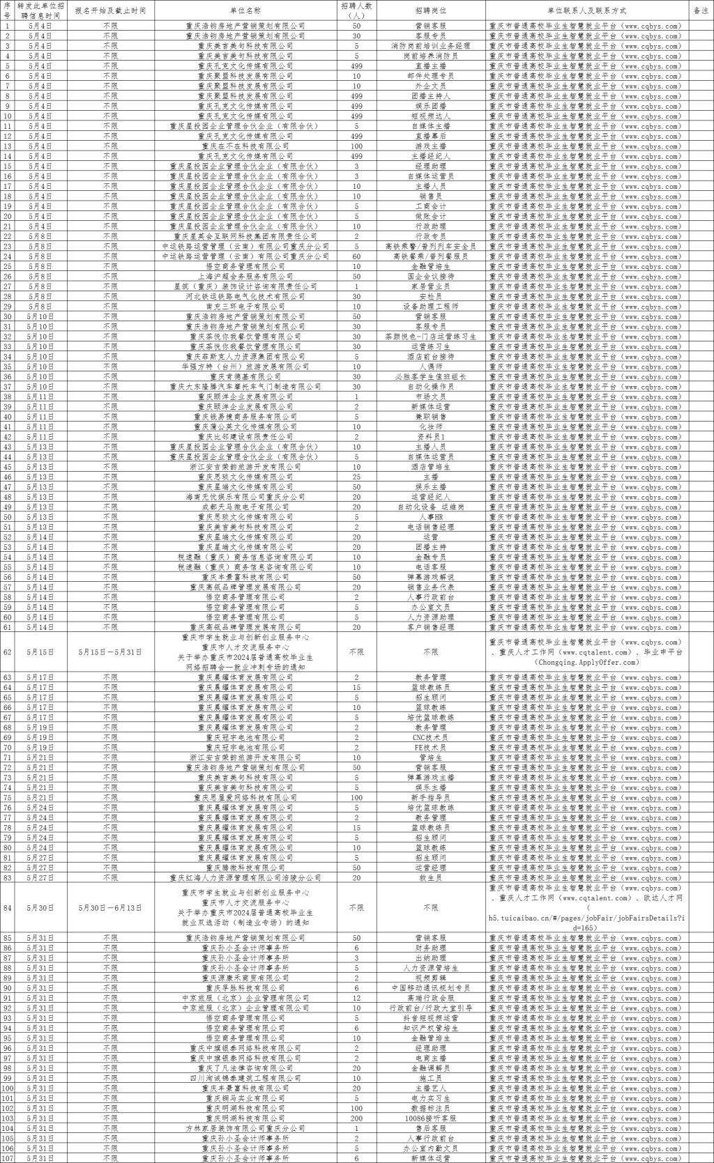 上一篇:重庆市学生就业与创新创业服务中心 重庆市人才交流服务中心 关于举办重庆市2024届普通高校“毕业季”综合类网络双选会的通知 下一篇:重庆市学生就业与创新创业服务中心 重庆市人才交流服务中心 关于举办重庆市2024届普通高校毕业生 就业双选活动(制造业专场)的通知