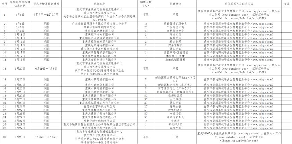 上一篇:重庆市学生就业与创新创业服务中心 关于举办重庆市2024届离校未就业高校 毕业生专场网络招聘会(第一场)的通知 下一篇:重庆市学生就业与创新创业服务中心 重庆市人才交流服务中心 关于举办重庆市2024届普通高校毕业生 网络招聘会—暑假专场的通知