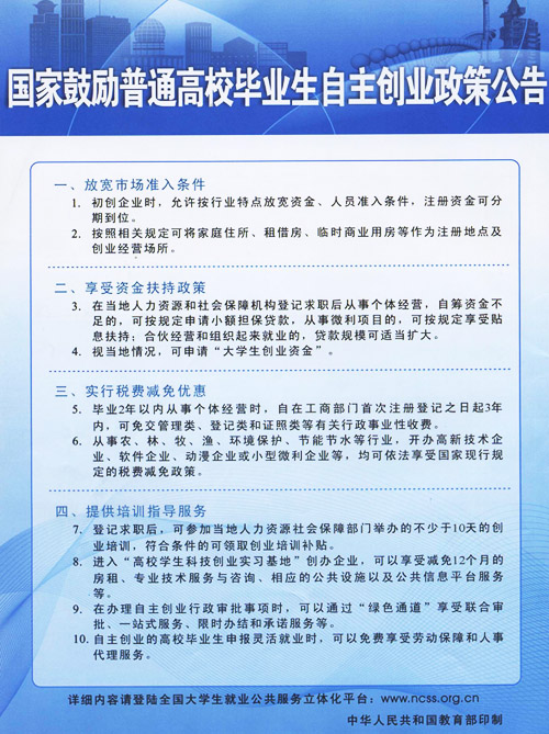 国家鼓励普通高校毕业生自主创业政策公告