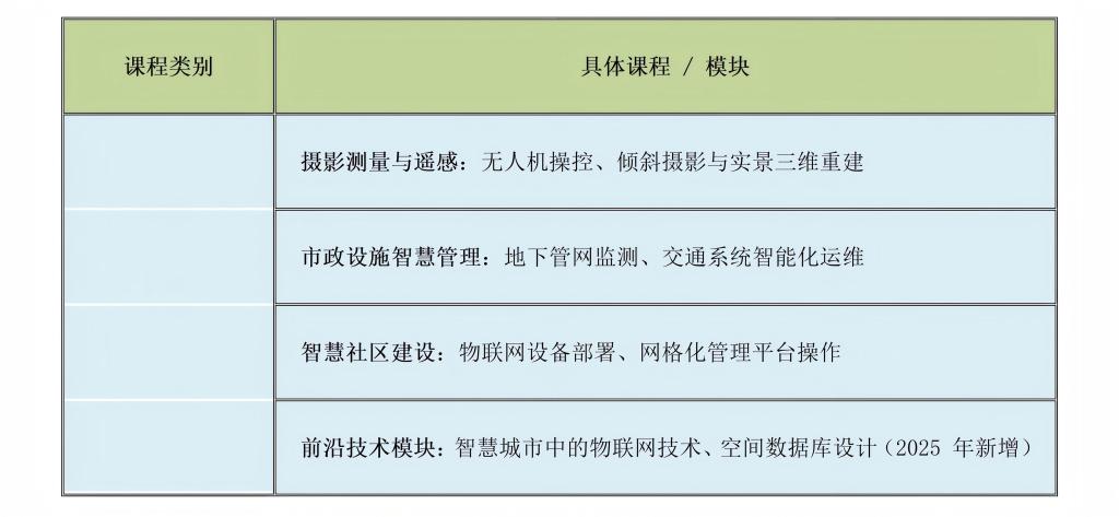 岗课对接:参照智慧社区管理师、智能楼宇工程师等职业标准开发课程,构建《数字化城市管理》、《数字摄影测量》、《BIM技术应用》等核心课程。