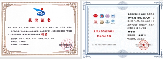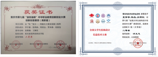 部分学生获奖证书