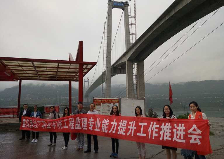 为了更好地完成重庆市高校骨干专业建设项目中建设工程监理专业能力提升项目,提升专业各项设置的与时俱进性,建设建筑装配式实训基地,建设工程教师代表共10人在重庆大学桥梁专家张亮亮教授的带领下于2017年5月5-6日到重庆驸马长江大桥施工现场进行了参观学习。