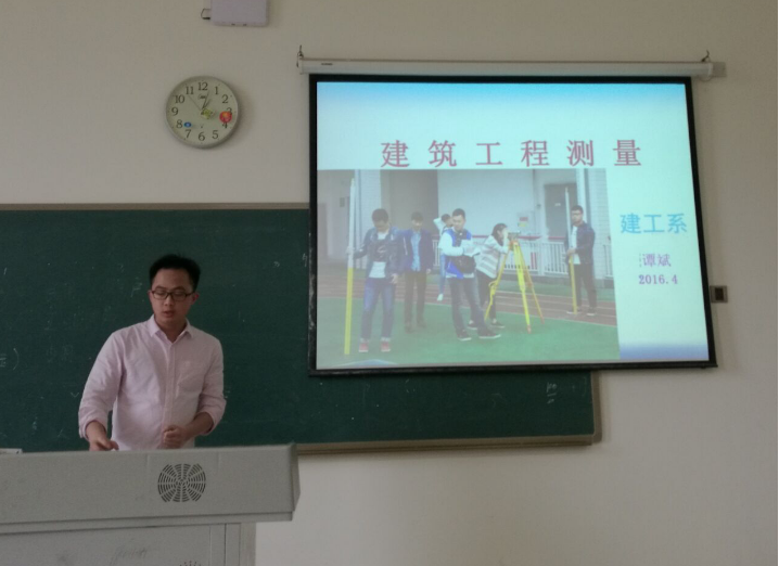 首先上场的测量小子——谭斌。他毕业于重庆大学,曾就职于中交一公局。通过他的说课,我们了解到,他根据施工单位的需求,结合本院的实际情况,总结出了一套很适合本院学生的教学方案。