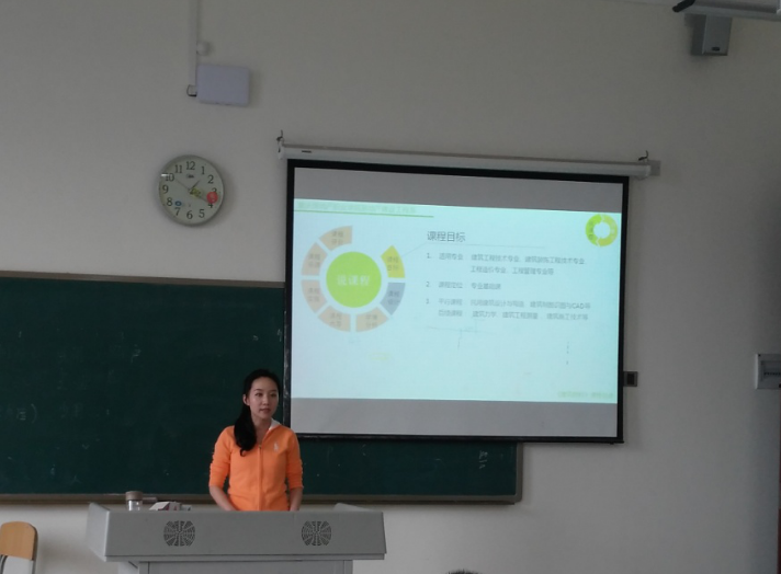 紧跟其后的是女神老师——王颖佳。王老师本科毕业于同济大学,研究生毕业于德国慕尼黑大学。她讲的是建筑工程材料。通过她的讲述,我们知晓了材料课的教学目标教学方法等等。