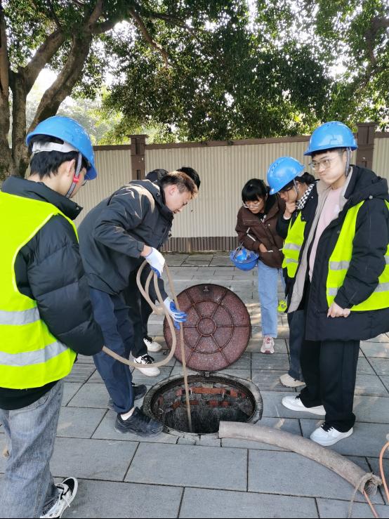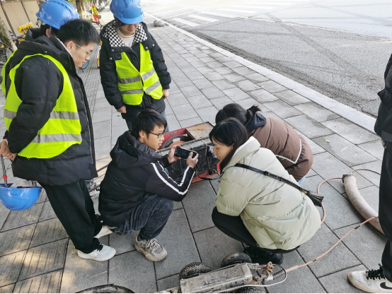 在紧锣密鼓地筹备“2024年重庆市职业院校技能大赛——市政管线数字化施工大赛”中,12月16日智能建造学院数智管理教研室有幸邀请到重庆市设计院的专家莅临本校,共同商讨参赛事宜。会后,市设计院的专家带领洪丹、吴思两位老师和三位参赛学生一起,实地进行了管道内窥的检测实践。