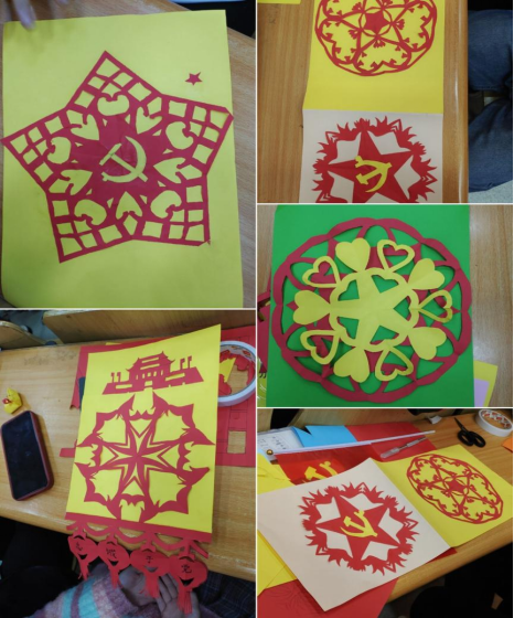 剪纸是我国非物质文化传承之一,是一种用剪刀或刻刀在纸上剪刻花纹,用于装点生活或配合其他民俗活动的民间艺术,学生党支部以主题党日活动为载体别出心裁的和中华民族优秀文化相结合,让同学们通过亲手参与剪纸融入爱国元素,切实感受红色文化与非物质文化遗产“相遇”的独特魅力,让传统文化焕发出了新的生机,给参加本次活动的所有成员一次深刻的思想洗礼,将爱党爱国的情怀厚植于心中。