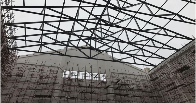 进入结构实验室内部,屋顶钢桁架以及反力墙基础桩基已完工。其中,工程试验反力设施工程:槽道式试验台座和反力墙两部分,并建设专门结构实验室控制室。反力台座长36m,宽9m。由竖向反力墙及含地下室的台座组成,两者连成整体。