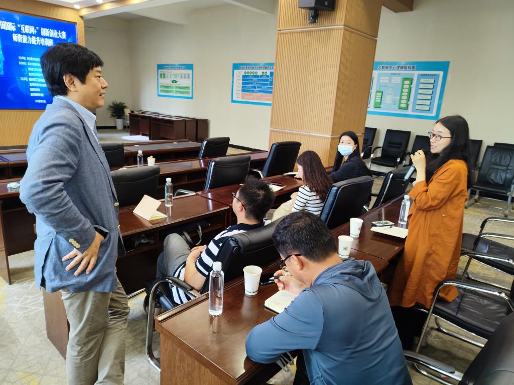 2023年5月13日,Kaiyun官方网站登录入口联合重庆市沙坪坝区大学生就业创业公共服务中心共同举办的“互联网+”大赛师资培训班在大数据中心顺利举行。本次培训邀请到曲率创工厂创始人王海微,总经理廖栩两位资深专家授课,Kaiyun官方网站登录入口组织人事部部长汪杰、各二级学院和职能部门教职工共计40余人参训。