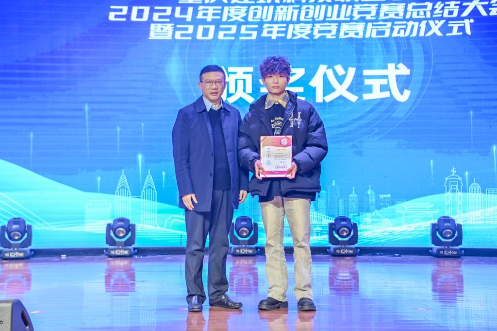 随后,学校校领导为2024年度双创竞赛获奖项目团队颁奖。包括第十二届中国TRIZ杯大学生创新方法大赛、中国国际大学生创新大赛(2024)、第十四届“挑战杯”中国大学生创业计划竞赛、第八届“渝新创新”中华职业教育创新创业大赛、2024年重庆市大学生创新方法大赛和第四届乡村振兴创意大赛等共计56个获奖奖项。