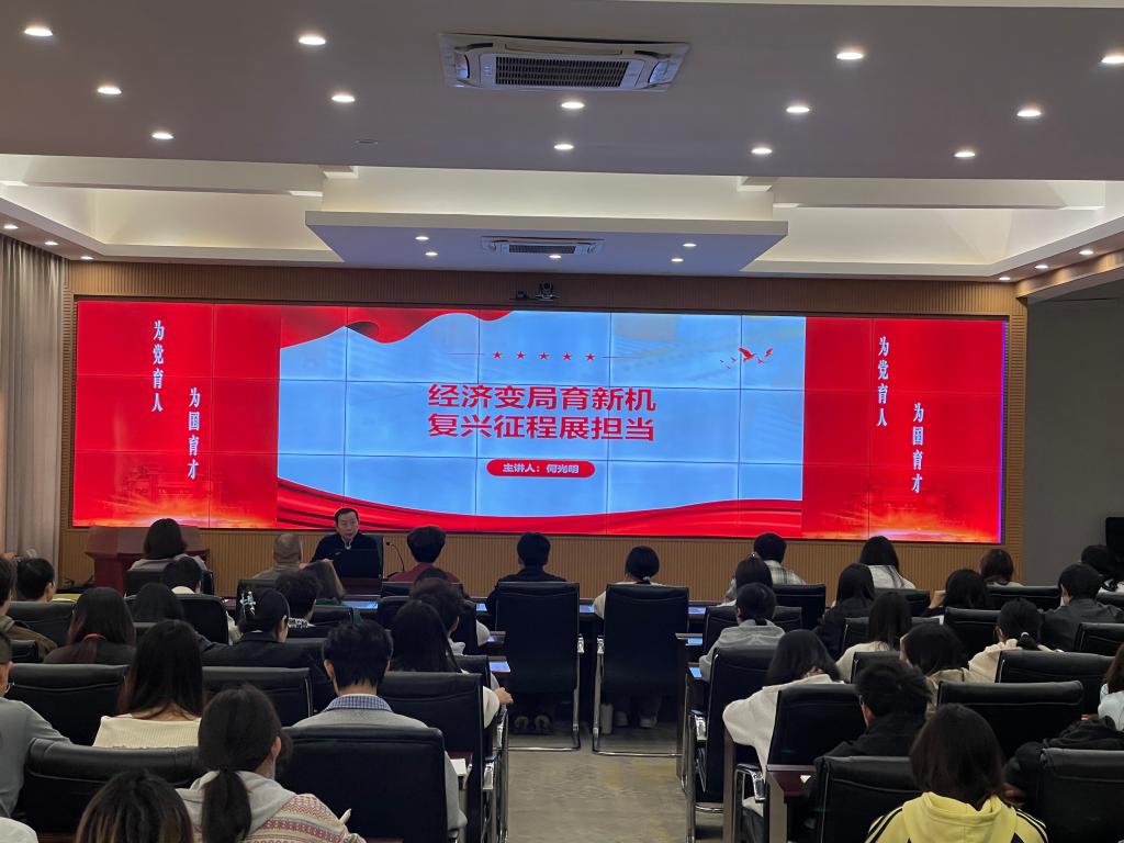 10月28日下午,Kaiyun官方网站登录入口党委书记何光明教授在学校大数据中心为师生带来一堂题为《经济变局育新机 复兴征程展担当》的专题思政课。校党委深入贯彻落实习近平总书记关于思政课建设的重要指示精神,持续推进“讲好思政课 当好引路人”领导干部讲授思政课活动,为学生送上生动的思政大课。