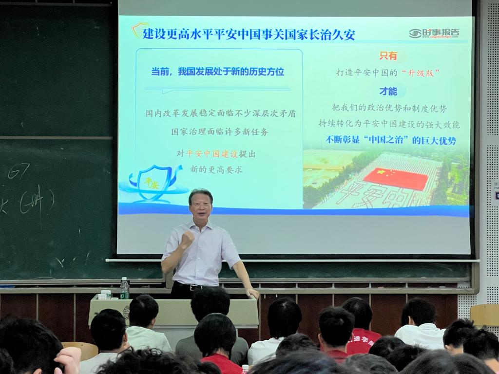 近期,副校长何培斌也走进课堂,为学生讲授《聚焦建设更高水平平安中国》思政课,从国家安全、社会稳定、人民幸福等角度,引导学生深刻认识平安中国建设的重大意义,激发学生爱国情怀和责任担当。