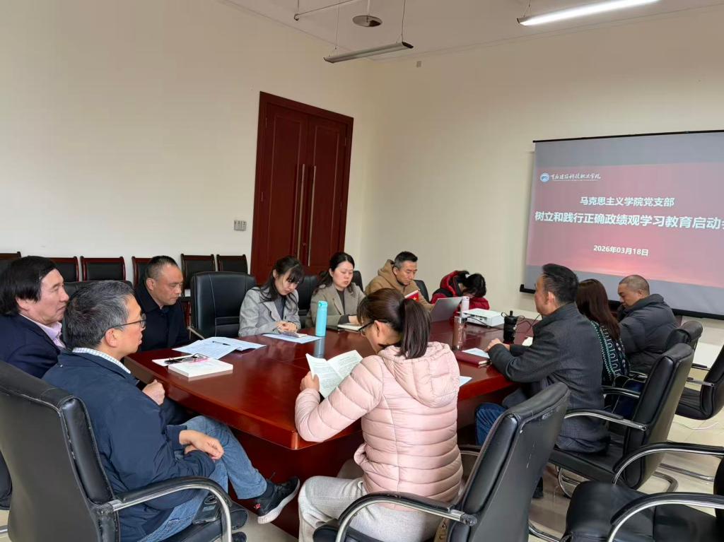 2026年3月18日,马克思主义学院党支部在伟业工作室召开专题学习会,正式启动树立和践行正确政绩观学习教育活动。会议由党支部副书记许亚非同志主持,全体党员参加。