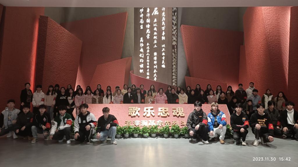青松掩映的歌乐山烈士陵园,庄严肃穆,哀乐低回。陈晓辉老师主持的纪念活动在敬献纪念花篮、许下铮铮誓言、讲述红岩故事、诵读烈士诗篇等一系列内容展开。来自智能制造学院2022级工业机器人(专贯本)一班学生代表、学生监察队队长廖纳川在领誓中讲到:“同样的年纪,不同的年代,300多名勇士为了心中的理想信念,选择将生命永远定格在74年前的那一天,他们用鲜血和生命换来了今天的幸福生活。我们要传承和弘扬红岩精神,努力成为全面发展的社会主义建设者和接班人,让革命先烈鲜血染红的旗帜永远飘扬在祖国的蓝天上!”纪念活动在全体队员许下“山河永念,英雄不朽。继承遗志,弘扬精神。铭记历史,吾辈自强。不忘初心,牢记使命。不负青春,不负韶华。不负时代,不负人民。立志成才,报效祖国”的青春誓言中到达高潮,表达了队员们对红岩英烈最崇高的敬意和自己最坚定的决心。在《红梅赞》的歌声中全体队员向殉难烈士敬献小白花并绕烈士墓一周,寄托了对红岩英烈最深的怀念之情。纪念活动结束后,全体队员参观了红岩魂陈列馆。