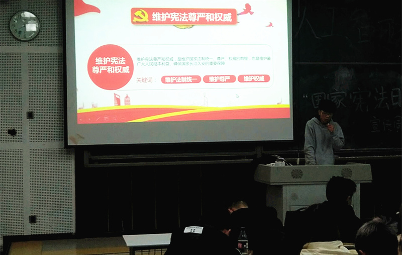 为学习宣传和贯彻实施宪法,全面领会、准确把握宪法修正案的核心要义和精神实质,营造良好的法治氛围,积极打造平安校园、文明校园,人工智能学院深入开展了学法用法教育活动。12月13日下午,我院18级全体同学开展了“12.4”国家宪法日暨全国法制宣传日宣传活动主题班会。