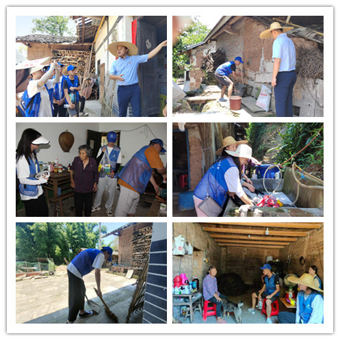 在新农村驻村第一书记邱书记等领导的带领下,志愿团队成员分为不同小组带着爱心物资走向新农村的脱贫户家中,与他们亲切交流并询问当地村民目前的生活状况。随后志愿者团队热心的帮助当地村民完成打扫、锄地等农活。走访过程中,志愿者团队分工明确,互相配合,积极深入群众当中,为接下来的实践工作积累了宝贵经验,有效促进了志愿者团队与群众之间的关系。