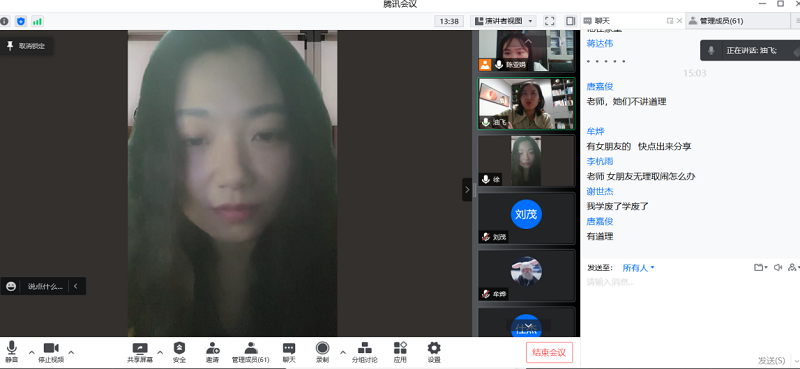 经过两个小时线上的分享,为情绪舒缓有效地减压,为今后的学习树立了方向,用直播的形式为学生工作开展了新的尝试,我们坚信在大家共同努力精诚团结配合下,我们的校园汇同这个美丽的春天给我们一次春满建院的厚爱。