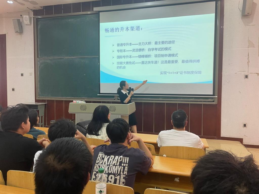会上,智能控制技术专业负责人王雪琴着重介绍了学院概况、专业前景、技能竞赛、产教融合、专升本等,描绘了成为了智能控制领域高端人才的广阔前景。