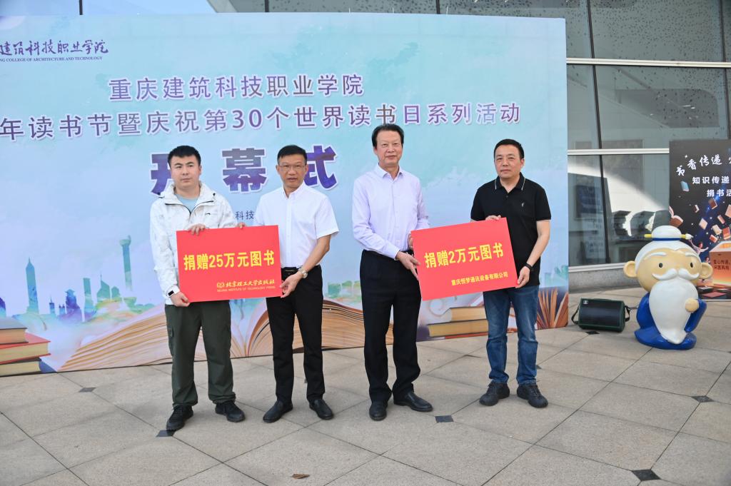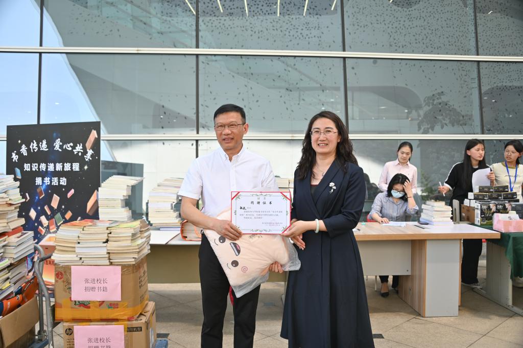 随后,张进校长和何培斌副校长代表学校分别向北京理工大学出版社、重庆恒梦通讯设备有限公司两家图书捐赠单位颁发捐赠证书。张进校长对两家单位支持学校图书文化建设表示衷心感谢。他指出,校企合作不仅是资源的整合,更是社会责任与教育使命的共鸣。捐赠的书籍将为师生拓宽视野、助力学术研究注入新活力。