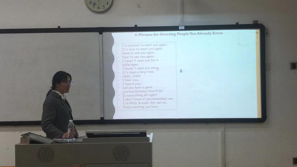 国际语言文化中心王靖老师今天的主讲内容为introduction greeting and description of people。此次分享主要采取了“你问我答”的座谈方式,增加了大家的互动交流,使整个场面充满了追求知识的氛围。学员们从自身角度出发,结合自身经验,阐述雅思学习的过程中应当准备的方面,英文自我介绍展示等。王老师解答了各位学员在雅思面试口语第一个环节的疑惑,让师生们受益匪浅。