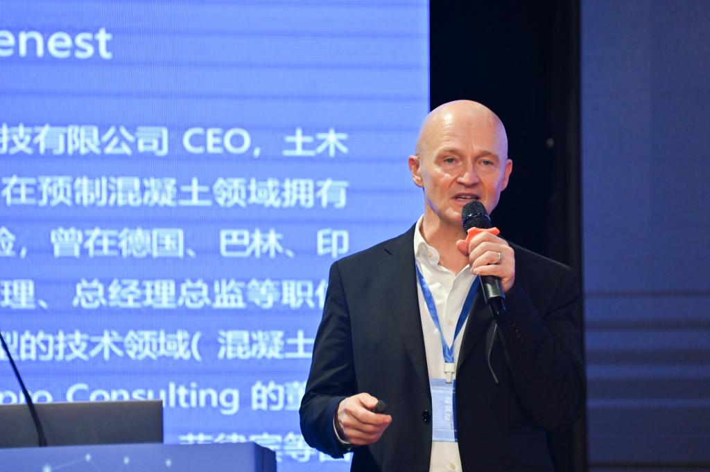 固尔特(上海)新能源科技有限公司CEO Andre Dienest讲解了一种新混凝土类型的优势和特点,可以将混凝土的用量减少40%,同时将使用寿命提升到150年,这种新型混凝土将为中国及亚洲地区的预制混凝土行业提供更专业、更有效、更具经济规模的混凝土养护解决方案。