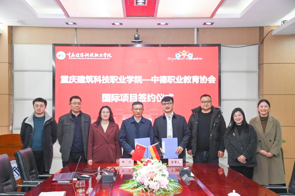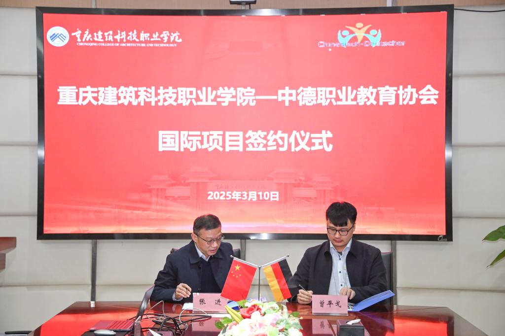 在正式签约环节,双方就合作框架达成多项共识:曾平戈率先解读德国职业教育体系及人才引进政策;张进校长与曾平戈代表校协双方签署教育合作备忘录;与会人员重点研讨智能建造类特色专业的合作路径,明确"语言强化+专业认证+企业实践"的三阶段培养模式,针对课程体系衔接、双元制教学本土化等关键问题进行了深度磋商。