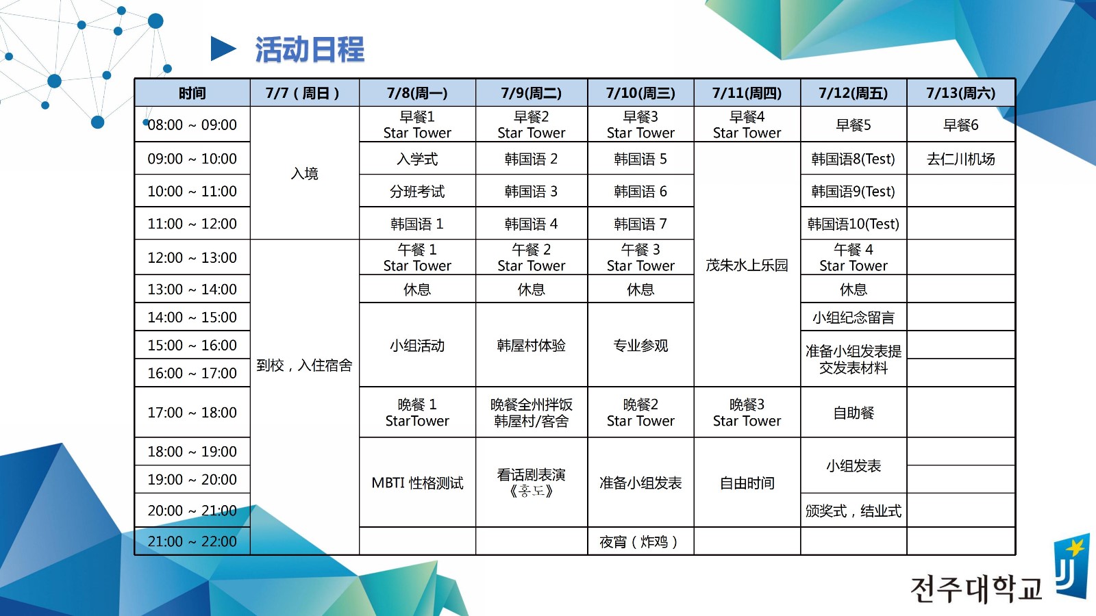 2019韩国全州大学夏季访学项目报名正式启动