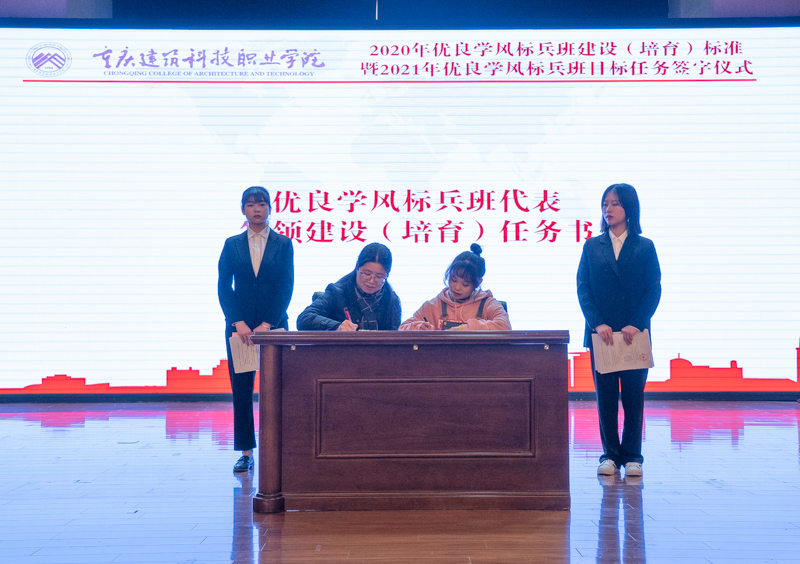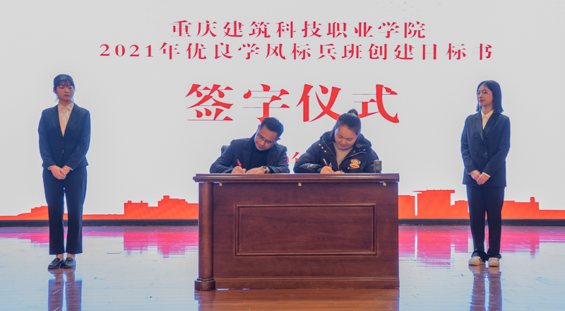 为加强校风学风建设,12月23日下午,由学校学工部组织开展评选的学校优良学风标兵班建设(培育)标准暨2021年优良学风标兵班目标任务签字仪式在学术报告厅隆重举行。此次活动由学工部副部长兼团委书记张慎富主持。学校副校长李果、学工部部长冉小平、各二级学院书记、10个优良学风建设标兵班和5个优良学风培育标兵班相关辅导员、各班班长和学生代表以及学工部全体人员参与此次签字仪式。