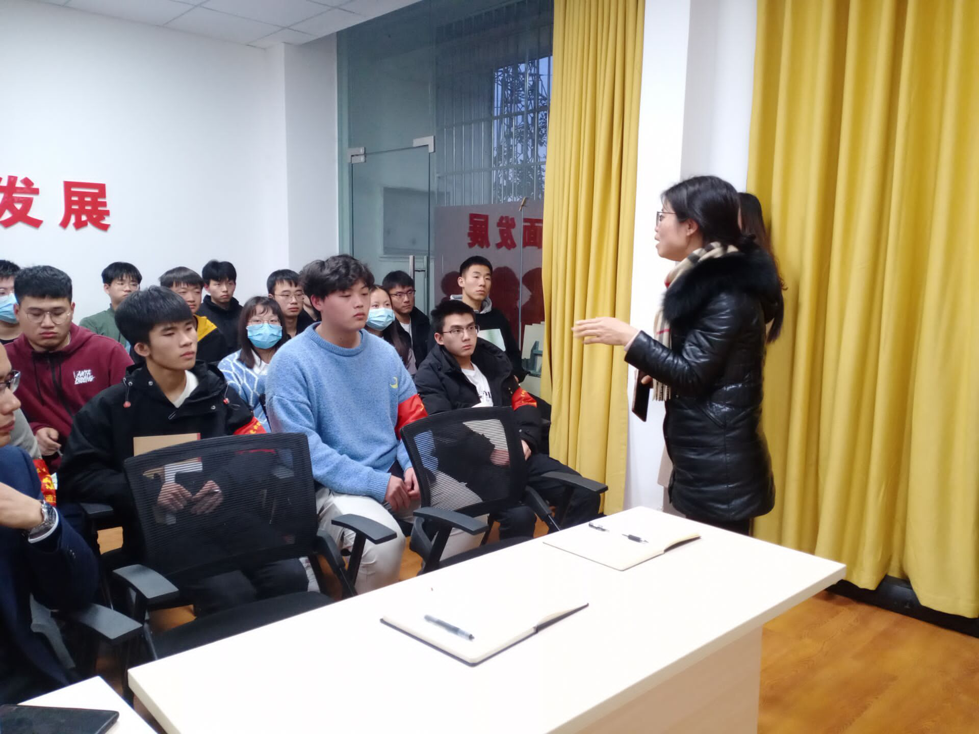 最后冉部长谈到,作为党员服务站的骨干希望各位同学能引发更多的思考,明白此时此刻的自己更应该怎么做,把握当下,奔赴未来,并提出要求,希望同学们去思考自己的职业生涯规划。