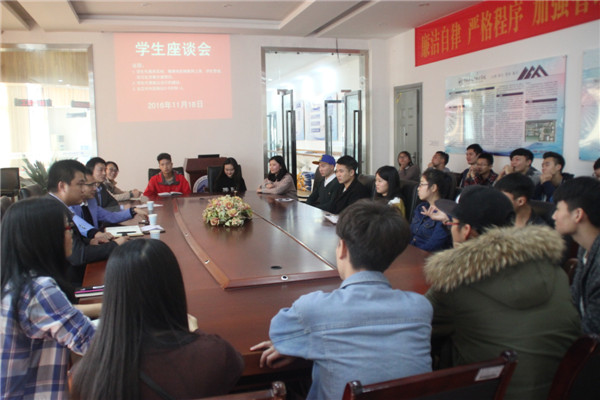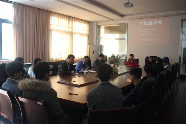 11月18日中午,学工部在招就处会议室A201召开2016-2017学年第一学期学生座谈会,副校长李果、学工部副部长兼学生处处长孙小川、学生处王忠荣、唐妤、各系共24名学生代表参加了会议。